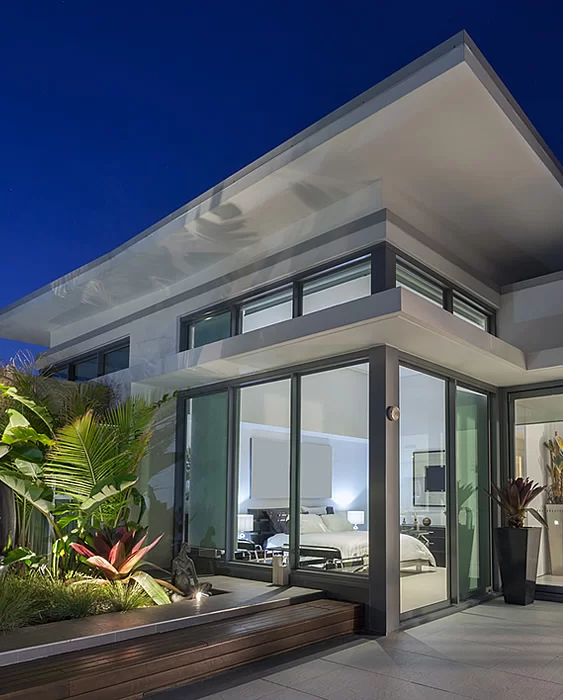 白を基調としたシックなミニマル空間に溶け込む照明設計と、温かみのあるデザイナーズ木製家具が調和し、上質なやすらぎを与えます。